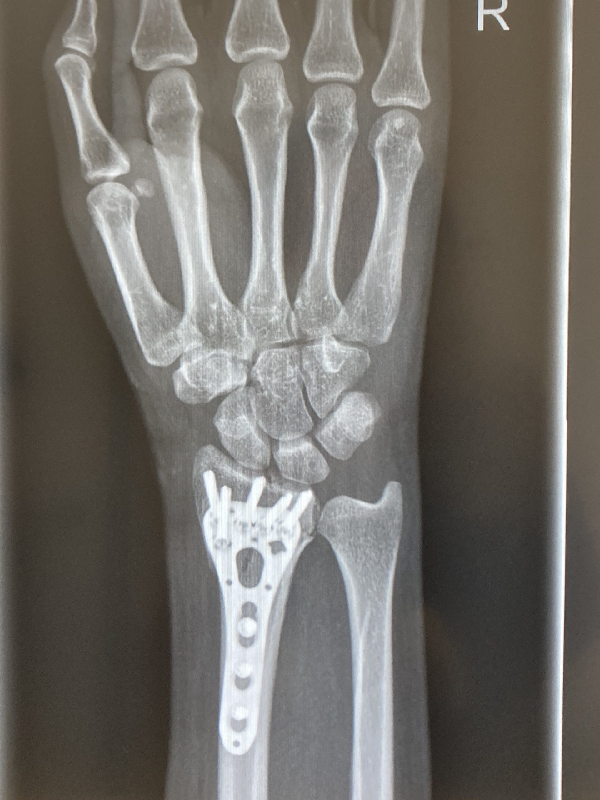 I got a fracture on my right wrist (I’m right handed) when I was snowboarding. I fell on icy snow for the first 10 minutes.