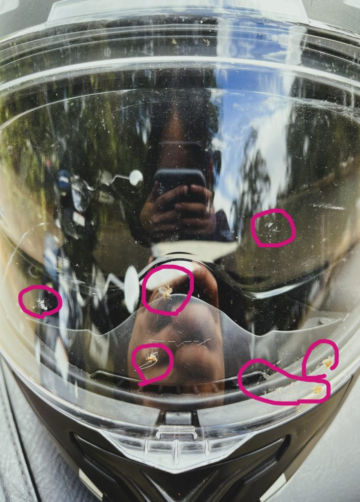 ヘルメットとジャケットも、チェーンロックで車体に繋げてロックしています。