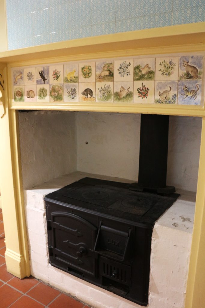 このタイプのコンロ、直接見たのは初めてかもしれない。上の動物タイル可愛い。