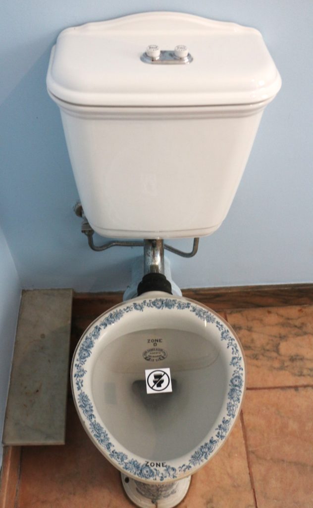 トイレ。装飾がきれいだけど、便座の座面細すぎておしり落ちちゃいそう。