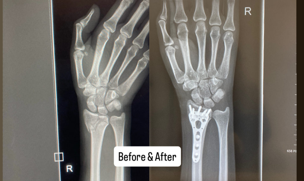 🧑⚕️「笑笑 手首を切開して、骨を元の位置に戻して、金属で固定するからね」