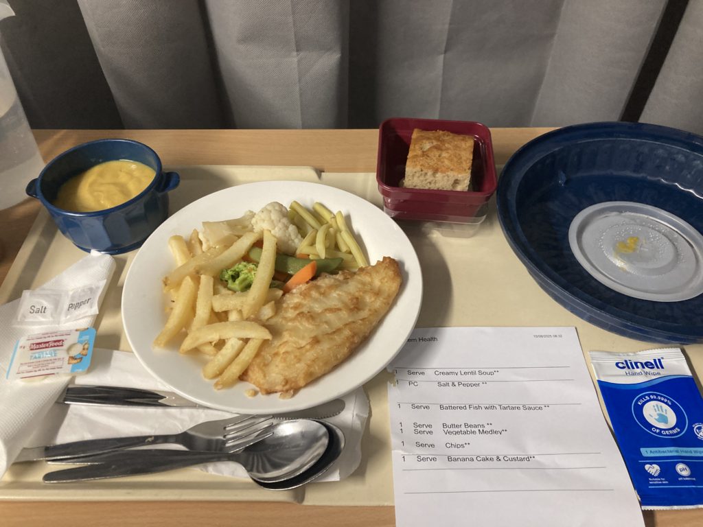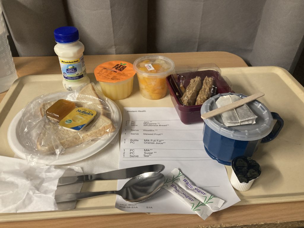 体調的には、ただ疲労と強烈な腕のしびれだけで食欲はあったので、出されたものは全部食べ切れました。めちゃくちゃおいしいわけではなかったですが…